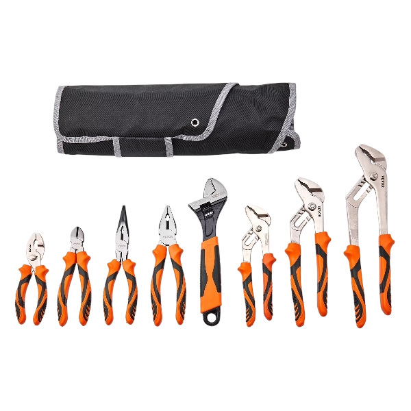 VEVOR 8-Piece Pliers Set, High Carbon Steel, 12″/10″/8″ Groove Joint Pliers, 8″ Linesman’s Pliers, 6″ Slip Joint Pliers, 8″ Long Nose Pliers, 6″ Diagonal Cutter, 10″ Adjustable Wrench, and Tool Bag