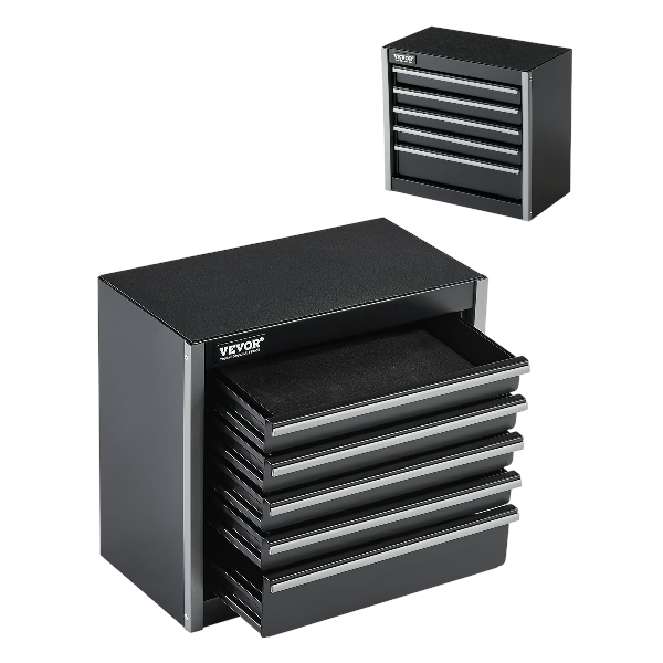 VEVOR Metal Tool Box, 8.6-inch, Portable Metal Tool Box with 5 Drawers, Small Tool Chest with EVA Liners and PP Feet Pads, Heavy-Duty Steel With Ball Bearing Opening and Powder Coated Finish, Black